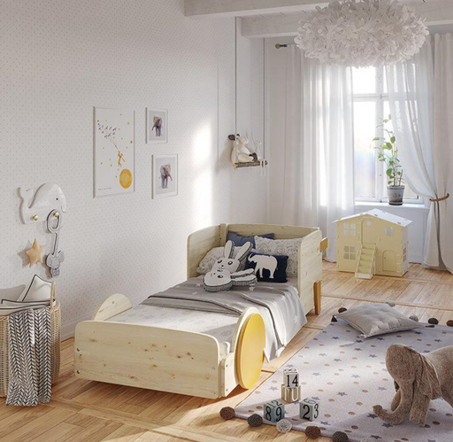 This single size pine bed features a car design and is ideal for toddlers and small children. This bed comes from a collection of buildable design...