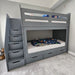 The Premier Bunk bed has a minimalist design that comes with 3 large storage drawers under the bed and 5 storage drawers in the stairs.