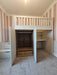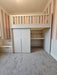 The wardrobe has shelving nooks at the back, along with a standard hanging rail and additional drawer. The bed can be sprayed in any colour of your choosing from ranges such as farrow and ball and colour trend. The colour in the photo is school room green by colour trend.